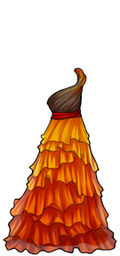 This elaborate, pleated gown mimics bright flames and glowing embers with striking colors. You can even wear it again in the fall! (VM)